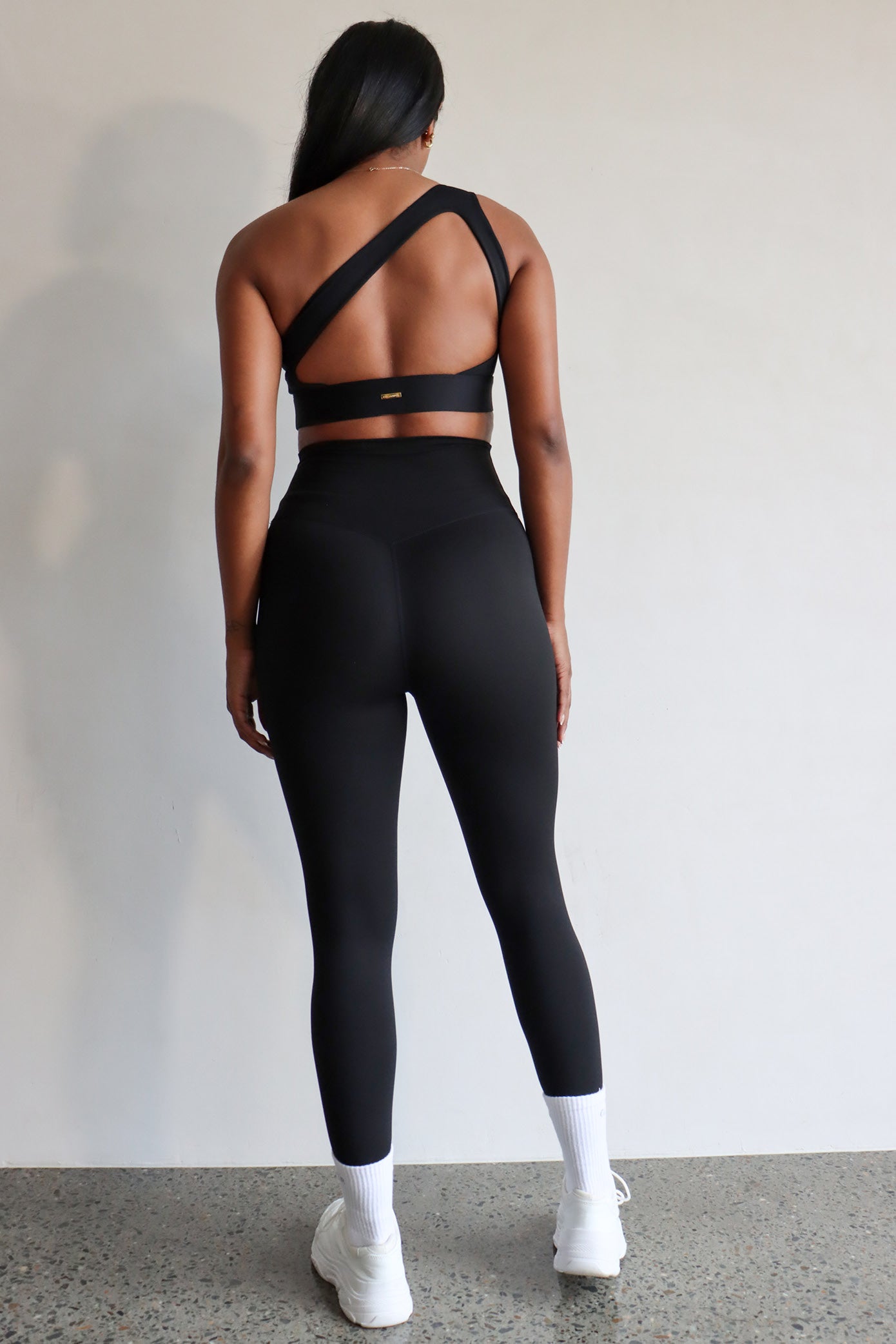 By popular demand, Tatiana is back - our asymmetrical, one-shoulder bralet. Available once again in classic Black, to match all the beautiful lengths of black shorts we have back in stock. Not only is this sports bra the most elegant thing from the front, the backline is simply stunning and something to behold.